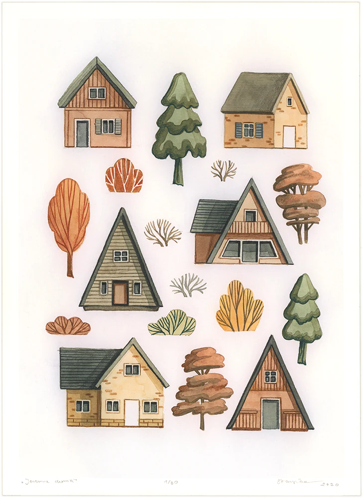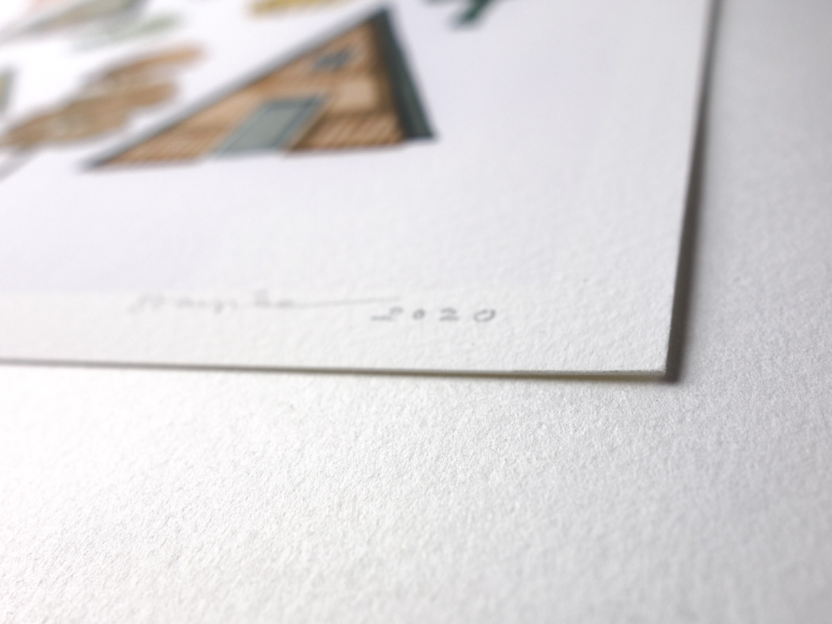 Praca, z której pochodzi wydruk, wykonana została na papierze przy pomocy farb akwarelowych oraz kredek. Każda inkografia opisana indywidualnym numerem i odręcznie podpisana. Dostarczana z certyfikatem autentyczności wydanym przez autorkę.